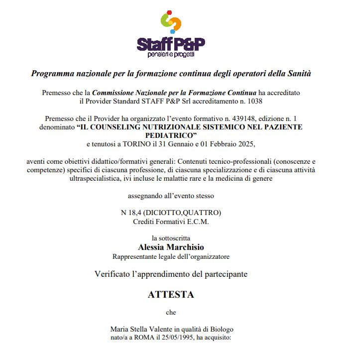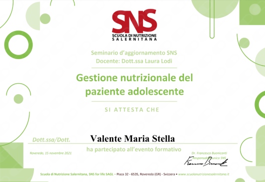 Sono la Dottoressa Maria Stella Valente e sono una Biologa Nutrizionista.